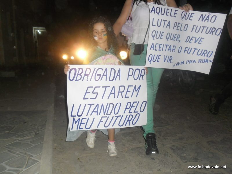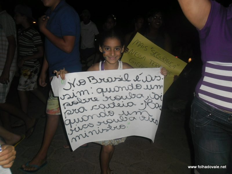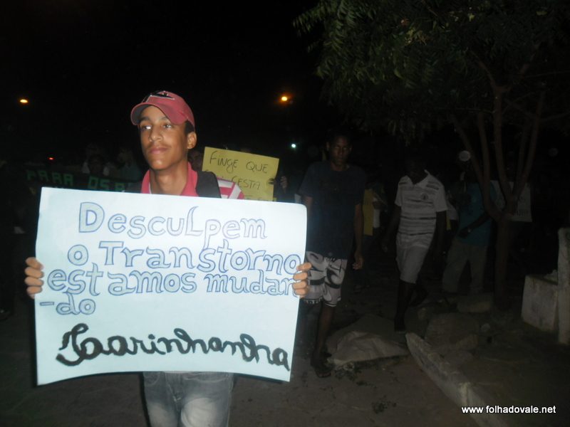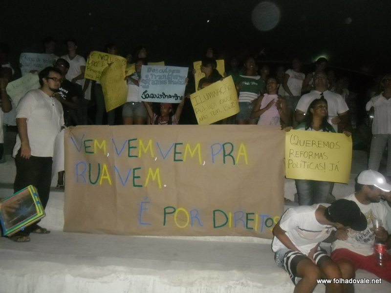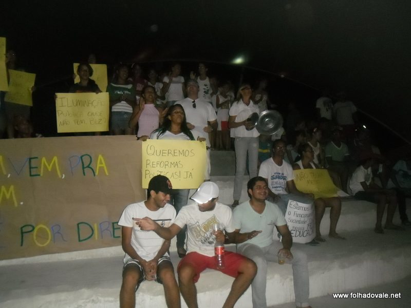 Os manifestantes percorreram as principais ruas do bairro da Sudene e centro,com palavras de ordem e cartazes que expressavam toda sua indignação. Defronte a Prefeitura, os manifestantes sentaram cantando o Hino Nacional e cobraram do poder público: segurança, saúde, educação, valorização da cultura (dança, teatro, música, esporte, etc.) e Iluminação Pública.