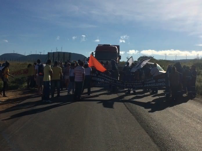 De acordo com o blog, existe outro bloqueio também na BR-030, na saída para Palmas de Monte Alto, nas imediações do Clack Motel, com trabalhadores PAVOTEC, empresa que trabalha na construção da Ferrovia Oeste Leste (Fiol), reivindicam salários atrasados.