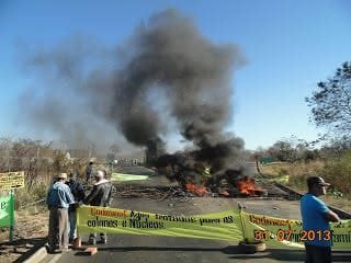 A estrada foi bloqueada com pedaços de paus e pneus desde às 5h00 da manhã e havia, agora há pouco, uma nuvem de fumaça preta no local. Não há previsão para a liberação do tráfego na rodovia. Mais de cem trabalhadores da usina de produção de biodiesel da empresa Sada estão impedidos de voltar para suas residências ou de chegar ao local do trabalho, após a troca do turno da madrugada e da manhã de hoje.