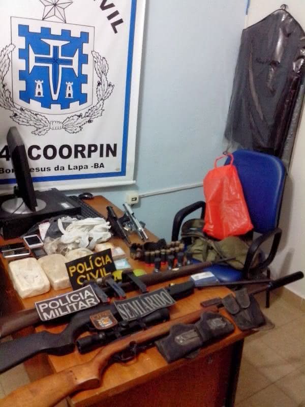 polícia descobriu que o local funcionava como uma refinaria destinada ao preparo de cocaína, crack e maconha prensada. Foram apreendidos 48,619kg de maconha, 58,301kg de crack e 5,430kg de cocaína. Com os bandidos ainda foi encontrada uma moto Honda Bross 150 preta de placa OUH- 1535, bem como 03 pistolas 09mm Taurus, 01 pistola 380, 01 revólver calibre 38 Taurus especial, 01 espingarda de repetição calibre 12 (com numeração raspada), 03 rifles calibre 22, sendo que um deles possuía luneta de longo alcance e silenciador, 06 carregadores 380, 05 carregadores 09mm, 07 Jets (municiador rápido para revólveres 38) e um farto estoque de munições (34 do calibre 357 fuzil, 04 do calibre 38, 15 do calibre 12, 354 do calibre 380, 26 do calibre 09mm, 24 do calibre PT40, 11 do calibre 32, 24 do calibre 22, cartuchos para espingardas variadas calibres 12, 32 e 24). Além disso, várias embalagens para drogas, cadernos de anotações, roupas do exército brasileiro, toucas ninja, entre outros. Ao chegar com o material na 24ª COORPIN, um dos policiais percebeu algo estranho em um botijão de gás também apreendido no local. Notou-se que o mesmo possuía uma tampa no fundo e, ao abri-lo, foram encontradas várias munições, comprovantes de depósito bancários, toucas, luvas e uniformes, bem como, uma carteira com documentação falsa com o nome de Fernando Matos onde a foto no RG era de um traficante da cidade de Bom Jesus da Lapa, preso em Salvador há quase um ano cujo nome verdadeiro é Francelino, conhecido como “Su”.