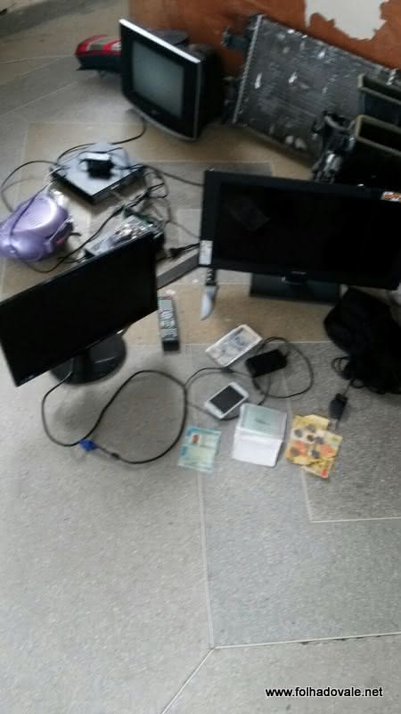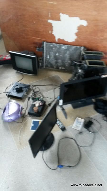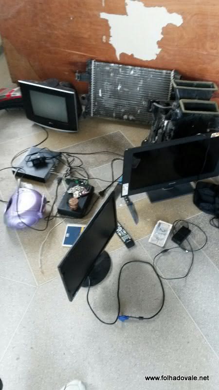 No local apontado por Vandinho foi encontrado: um cordão, pulseira, dois chips, um celular LG, 5 recibo de deposito,uma quantia no valor de R$ 65,10,3 bitucas de cigarro de maconha,uma TV LG,14 polegadas,um farol de carro,uma câmara de filmagem infra rosa,um radiador de carro,uma peça de ar condicionado de carro,um aparelho DVR 44, um micro system MP3,um facão,uma faca,um caderno com anotações pequenas,uma chave de carro e um destrinchador de maconha.