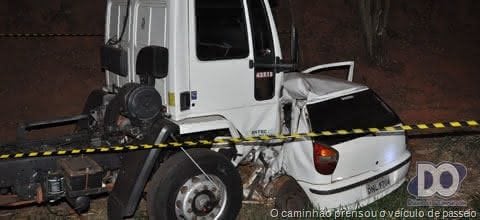 No Palio branco, placas DNL-9706, de São José do Rio Preto (SP), estavam dois homens, ambos jovens. O motorista Ernanes Domingos da Silva, 28 anos, morreu na hora e ficou sob as ferragens, na altura do banco do passageiro, prensado. O passageiro Edivaldo da Silva e Silva, 25 anos, foi transferido em estado grave, para a Santa Casa de Misericórdia, onde permanece.