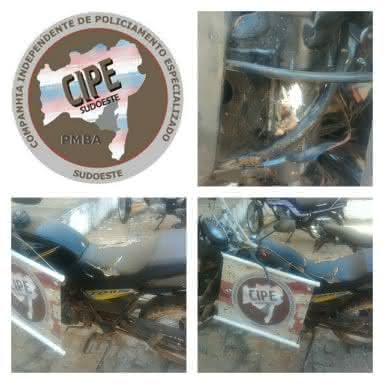 Uma motocicleta com chassi suprimido foi apreendida pela Companhia Independente de Policiamento Especializado Sudoeste (CIPE/Sudoeste), por volta das 12h20min, nas proximidades do estacionamento do Balneário Lajedo, zona rural de Sebastião Laranjeiras, região Sudoeste da Bahia.
