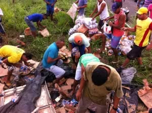 O ajudante dele, Gelson Batista dos Santos, 55 anos, sofreu ferimentos leves e foi socorrido para o Hospital de Base de Itabuna, onde permanece internado. Ainda segundo a polícia, ele passa bem. O veículo transportava uma carga de feijão e açúcar, que foi saqueada por cerca de 50 moradores da região.
