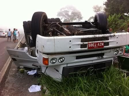 Um grave acidente deixou uma pessoa morta e outra ferida na manhã desta sexta-feira (11) na entrada no município de Ubaitaba, localizado a 450 quilômetros de Salvador. De acordo com informações da Polícia Rodoviária Federal (PRF), o motorista de um caminhão que seguia de Jequié para Ubaitaba perdeu o controle do veículo e tombou no quilômetro 440 da BR-101.