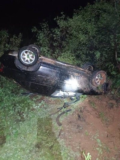 Motorista fica ferido após capotamento de carro na BR-030, em Palmas de Monte Alto