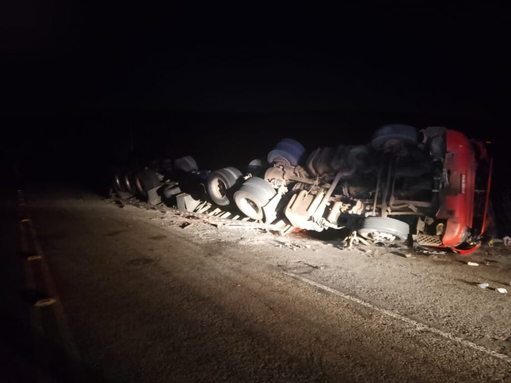 LICÍNIO DE ALMEIDA — Um motorista de 57 anos ficou ferido após a carreta que conduzia tombar na madrugada desta quarta-feira (8), em Licínio de Almeida, na região sudoeste da Bahia. O tombamento ocorreu por volta de 01h35, no entroncamento da BA-156 com a BA-026.