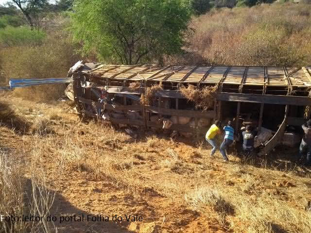 O motorista de uma carreta que transportava bois morreu em um acidente na BA-161, entre Agrovila 15 e Marrequeiro, zona rural de Carinhanha, no Oeste da Bahia, na tarde desta terça-feira (31).