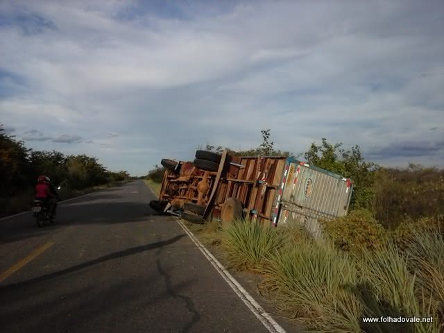Um caminhão que fazia o itinerário entre Malhada e Iuiú, tombou na tarde deste domingo, na BR-030, em Malhada. O motorista identificado por Paulo Cesar, disse que um carro de passeio teria invadido a faixa que ele trafegava e por isso precisou jogar o caminhão para o acostamento. Porém, não conseguiu retornar e acabou tombando na pista.