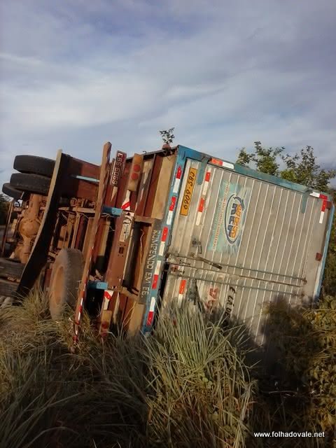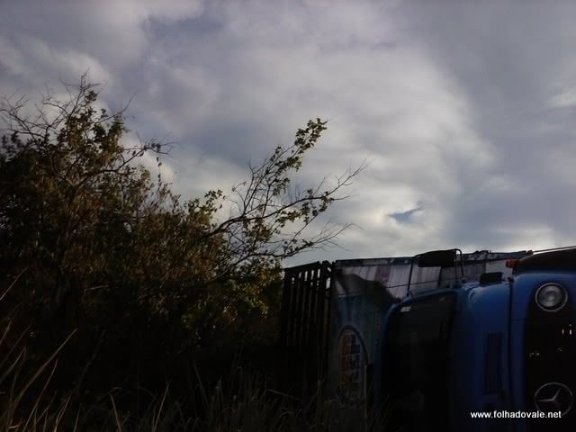 O motorista identificado por Paulo Cesar, disse que um carro de passeio teria invadido a faixa que ele trafegava e por isso precisou jogar o caminhão para o acostamento. Porém, não conseguiu retornar e acabou tombando na pista.