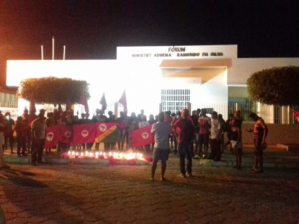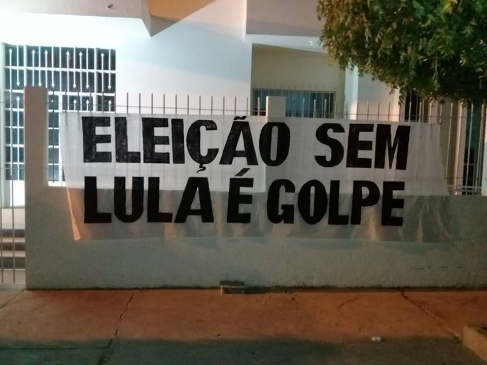 Integrantes de movimentos sociais e lideranças sindicais fazem, desde o fim da tarde desta terça-feira (23), uma vigília em frente ao Fórum Ministro Ademar Raimundo da Silva de Carinhanha, no Oeste da Bahia. Durante toda madrugada dezenas de velas foram acessas e um carta dizendo: “eleição sem Lula é golpe”,foi colocado na murada do Fórum.