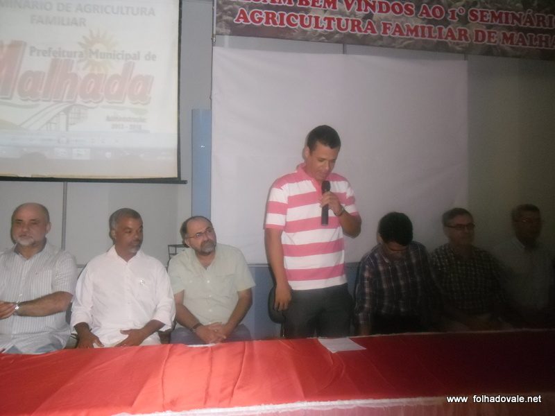 O município de Malhada, no sudoeste da Bahia, promoveu na manhã do último sábado, 20 de abril, no auditório do Colégio Paulo Souto, o 1° Seminário sobre Agricultura Familiar. O evento foi destinado para os agricultores do município e de cidades da região e contou com a presença dos prefeitos Paulo Elísio Cotrim, Paulo da Yonara (PT), Carinhanha; Carlos Vagner Frota Lopes, Dr.Vaguinho (PT), Iuiú; Dorival Barbosa do Carmo, Dr.Dorival (PP),Urandi;deputados Waldenor Pereira(PT),Zé Raimundo(PT),vereadores dos munícipios de Malhada e Carinhanha.