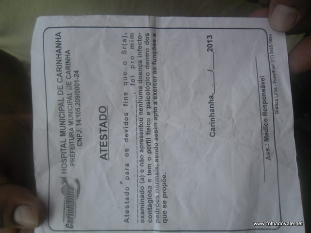 O Secretario de Saúde, Ronaldo Cassiano, explicou que procurou um dentista e foi orientado que o atestado não tem peso algum. Para Ronaldo, o lembrete feito no verso do atestado, foi simplesmente devido não haver nenhuma receita. “O dentista poderia muito bem ter feto o lembrete numa folha em branco”, conclui.