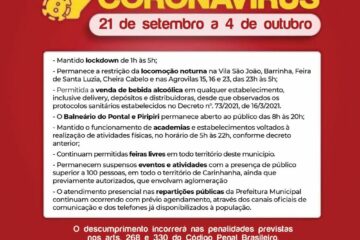 Prefeitura de Carinhanha renova decreto de medidas restritivas contra a Covid-19