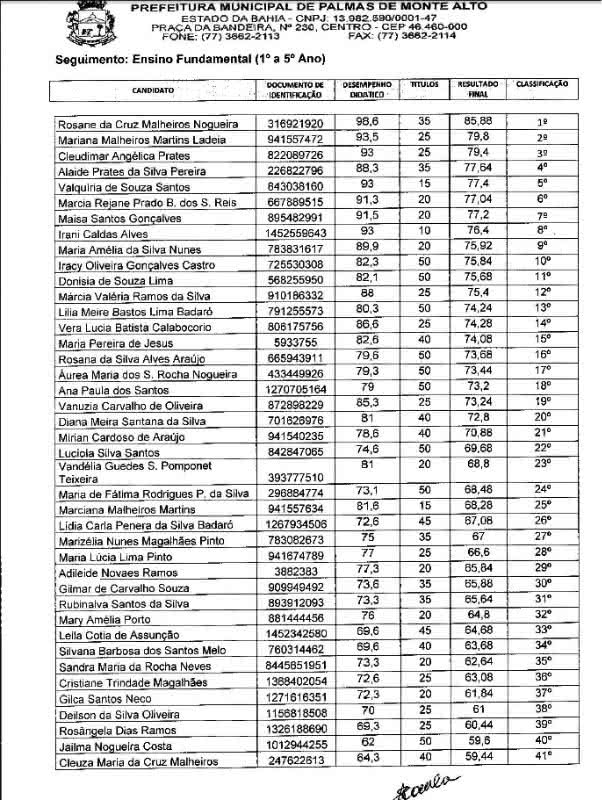 Palmas de Monte Alto: Secretaria Municipal de Educação divulga resultado preliminar do processo seletivo para contratação de professores