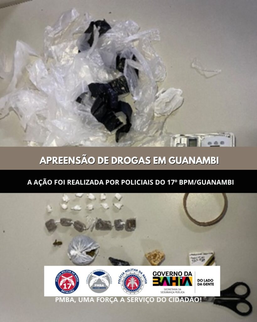 GUANAMBI – Policiais do 17º Batalhão de Polícia Militar (BPM) apreenderam entorpecentes na madrugada desta quinta-feira (2), no Residencial dos Pássaros, em Guanambi, no sudoeste da Bahia.