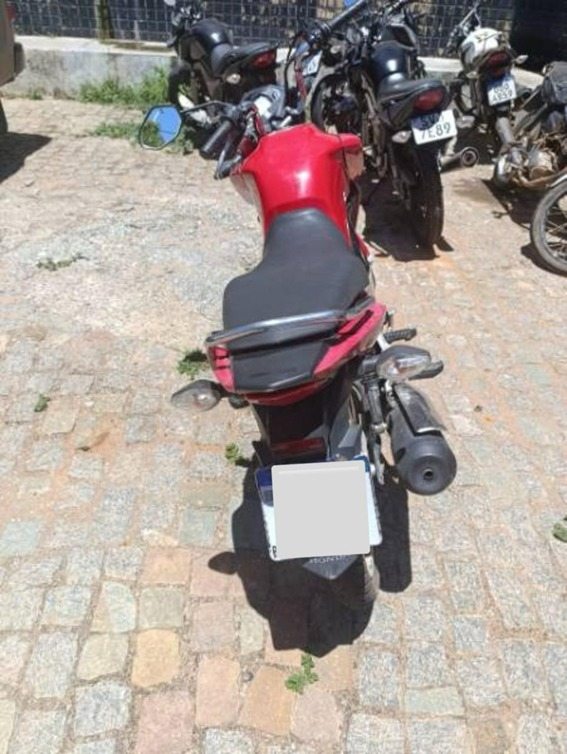 GUANAMBI — Uma moto com sinais de adulteração no identificador foi apreendida na manhã da última sexta-feira (14), em Guanambi, na região sudoeste da Bahia. O veículo Honda CG 160 Fan, vermelho, estava estacionado por volta das 10h40 na Avenida Sandoval Moraes.