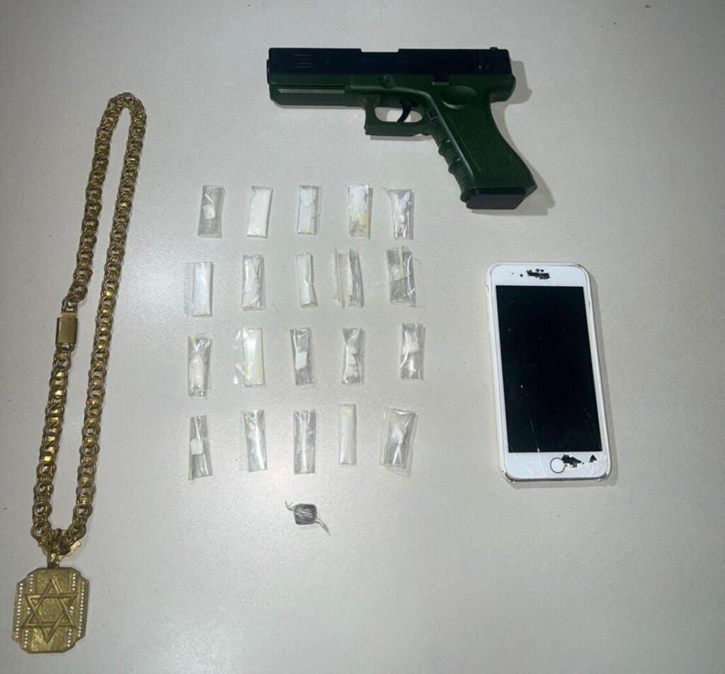 Entre os itens apreendidos estavam porções de substâncias análogas à maconha e à cocaína, além de aparelho celular, simulacro de arma de fogo e outros objetos.