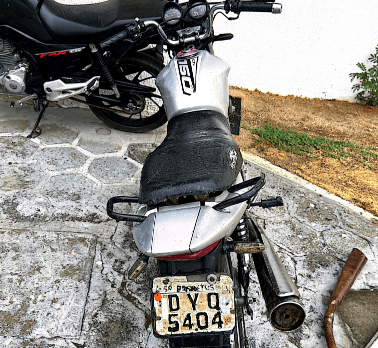 Questionado, ele respondeu que a motocicleta teria sido adquirida de uma pessoa conhecida como “Dadai”, residente na mesma localidade e igualmente conhecida por envolvimento em práticas criminosas. No local também se encontrava sua companheira.