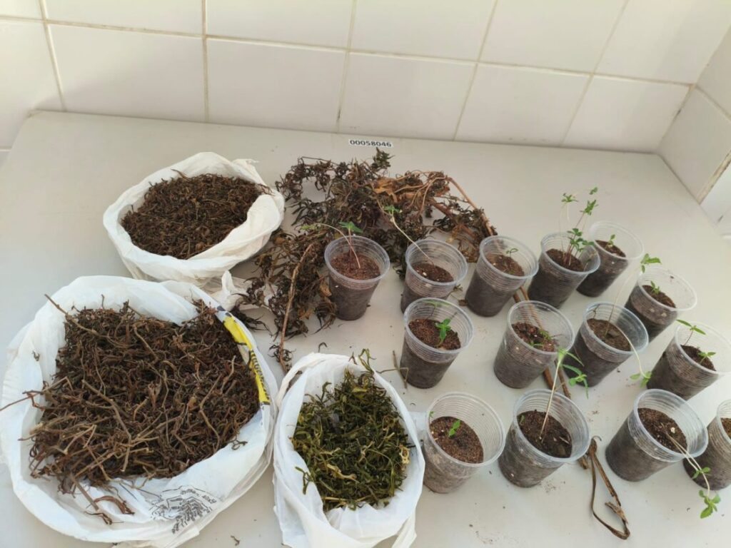 Ao todo, foram apreendidas 31 mudas análogas à maconha, dois pés da planta e três sacolas contendo cerca de 263 gramas da substância.