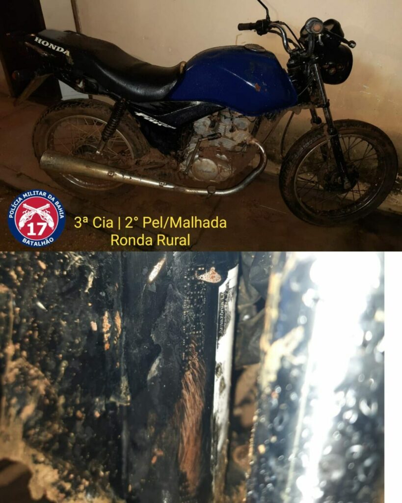 MALHADA – Uma moto com o chassi suprimido foi apreendida na noite de domingo (19), em Malhada, no Médio São Francisco. A motocicleta com chassi parcialmente suprimido foi apreendida por volta das 18h, no distrito de Canabrava.