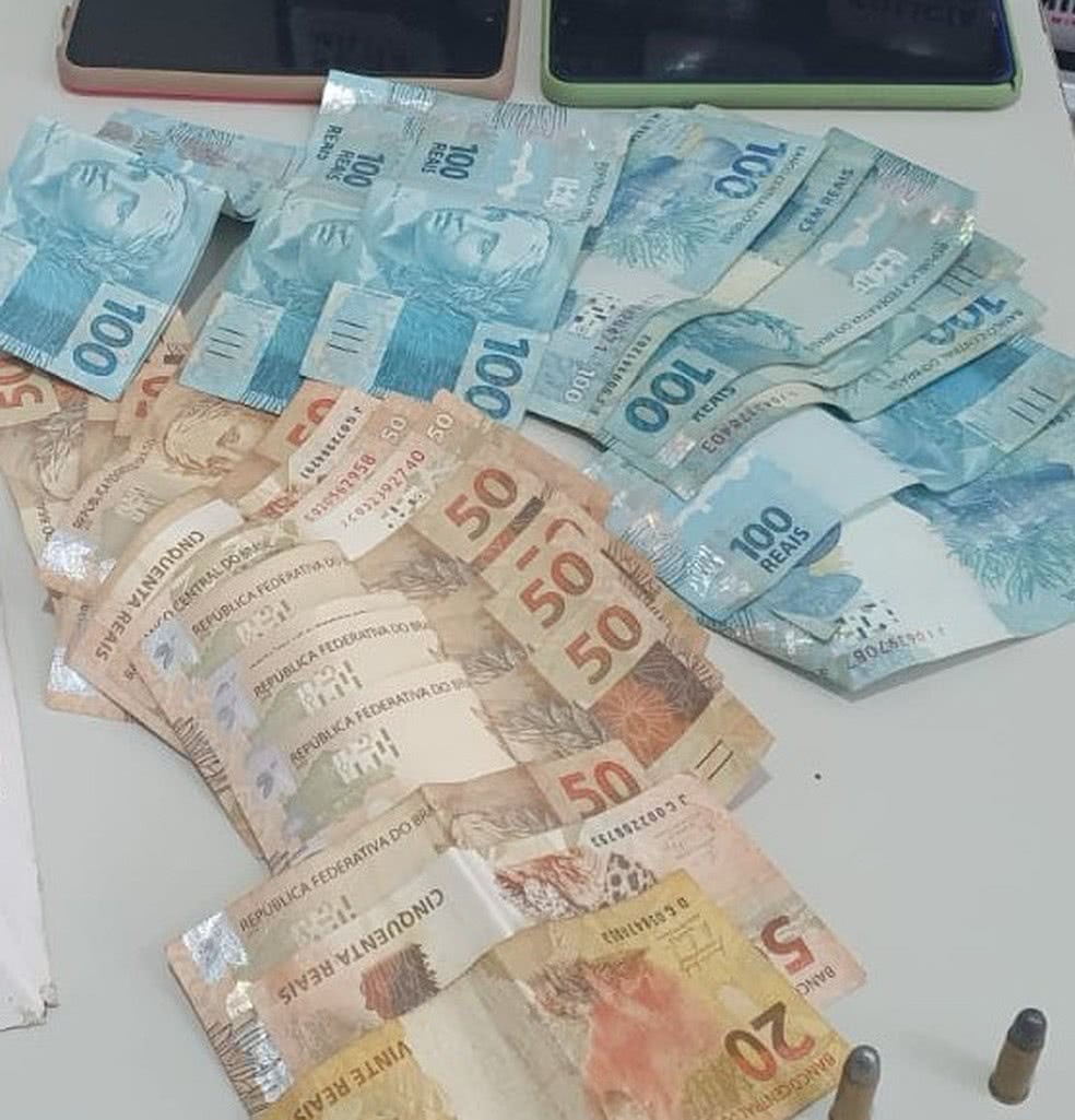 Além do dinheiro, das munições e da réplica de arma, os policiais apreenderam três celulares, que serão encaminhados à perícia.
