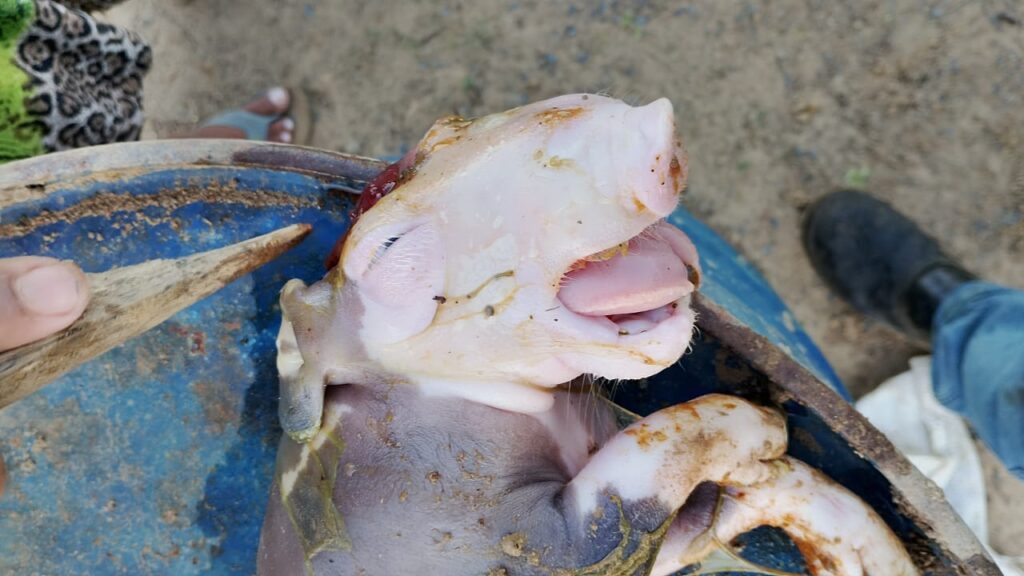 O nascimento do filhote causou espanto aos vizinhos, que não haviam presenciado nenhum evento parecido na propriedade.