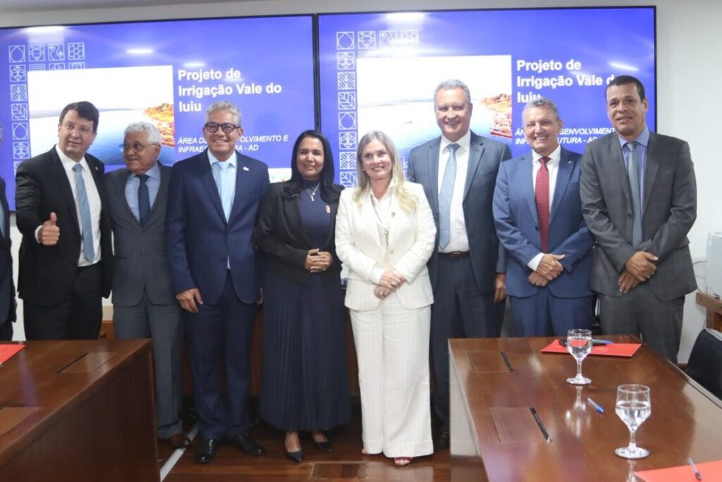 BRASÍLIA – A prefeita de Iuiu, na região sudoeste da Bahia, Valdinha (PSD), cumpriu agenda em Brasília ao lado do ministro Rui Costa (PT), na noite da última terça-feira (24). O evento foi voltado ao projeto de irrigação do Vale do Iuiu.
