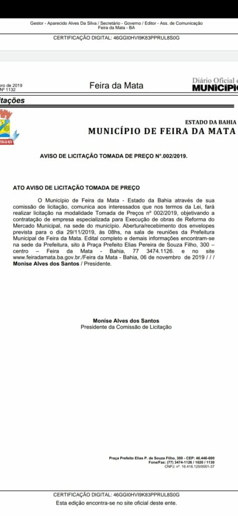 Cidim disse que o mercado de Feira da Mata é histórico tem uma função muito importante na manutenção de muitas famílias da agricultura familiar. O prefeito falou ainda que acredita que com a revitalização o mercado seja atraente para aqueles que visitam a cidade. “Acreditamos muito que seja atraente para quem vem de fora e até para a população daqui. Nosso mercado é um mecanismo muito importante para manter muitas familias que produzem aqui e vendem aqui os seus produtos, e estaremos em breve, esse prefeito tocador de obras aqui, inaugurando a revitalização do mercado”, completou o prefeito de Feira da Mata.