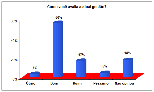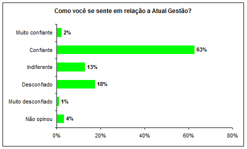 De acordo com o Instituto, 63% dos entrevistados confiam na gestão, enquanto que 2,3% estão muito confiantes com a perspectiva da administração. Para 12,8% dos serra-malhenses, a perspectiva sobre a atual administração é indiferente, enquanto 17,5% se sentem desconfiados e apenas 1% estaria muito desconfiado. Não opinaram 3,5%.