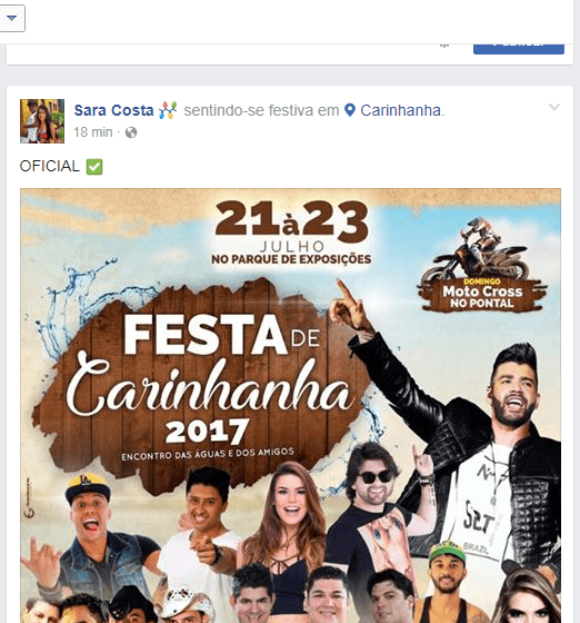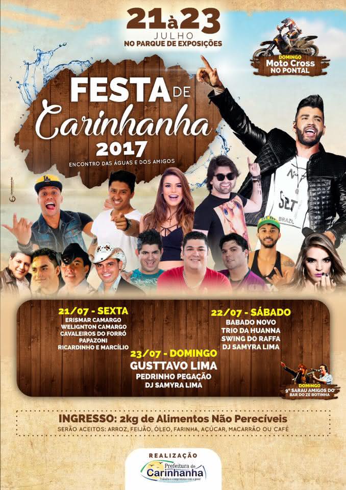 A Prefeitura Municipal de Carinhanha, no Oeste da Bahia, divulgou nesta quinta-feira (6), o cartaz oficial com as atrações da Festa do Divino 2017, antigo (Encontro das Águas e dos Amigos).1