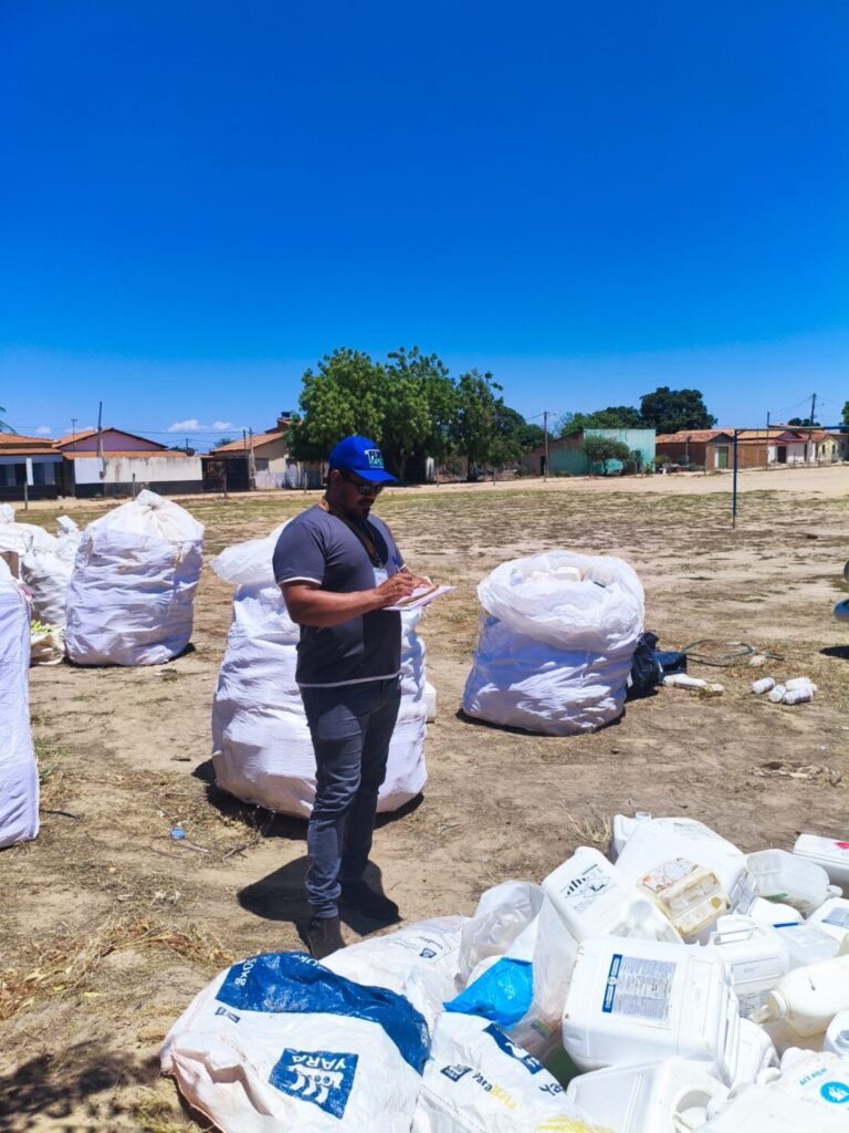 A ação aconteceu na comunidade de Angico e teve como objetivo orientar, incentivar e facilitar o descarte correto das embalagens, contribuindo diretamente para a preservação do meio ambiente e a proteção da saúde da população.