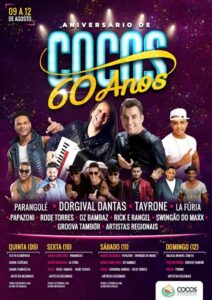 A Prefeitura de Cocos, através da secretaria de Cultura, divulgou oficialmente a programação dos 60 anos de emancipação política. O evento vai acontecer de 9 a 12 de agosto, com mais de dez atrações.