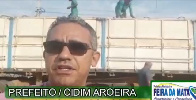 Neste sábado (16), a prefeitura de Feira da Mata divulgou em sua página oficial no Facebook , um vídeo em que o prefeito Aparecido Alves da Silva (Cidim Aroeira) aparece recebendo uma carreta carregada com 2.500 sacas de feijão que serão doados às famílias de Feira da Mata.