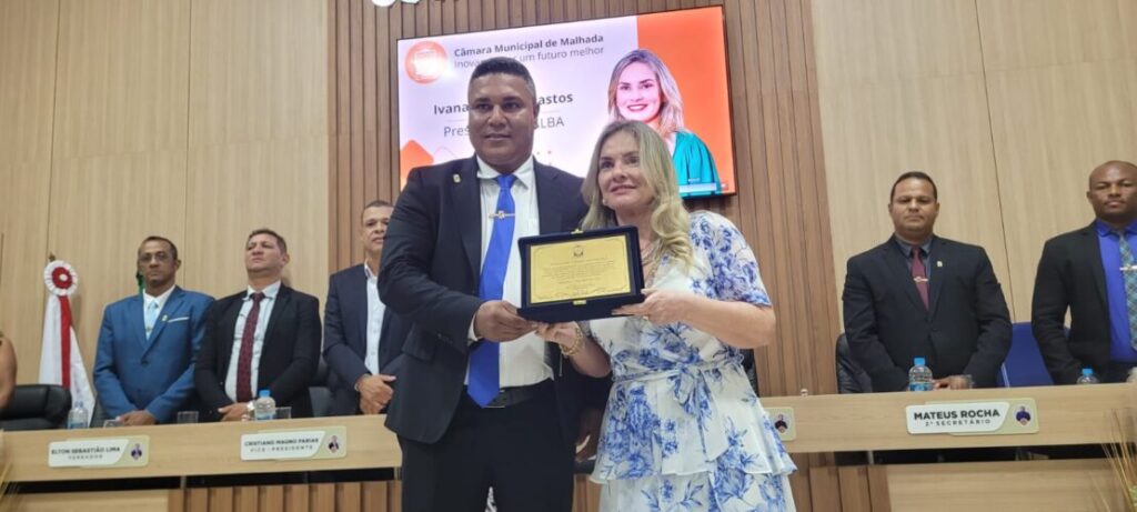 MALHADA — A presidente da Assembleia Legislativa da Bahia (ALBA), a deputada estadual Ivana Bastos (PSD), se emocionou ao receber o título de cidadã malhadense durante cerimônia realizada na Câmara Municipal de Malhada, na noite de sexta-feira (6).