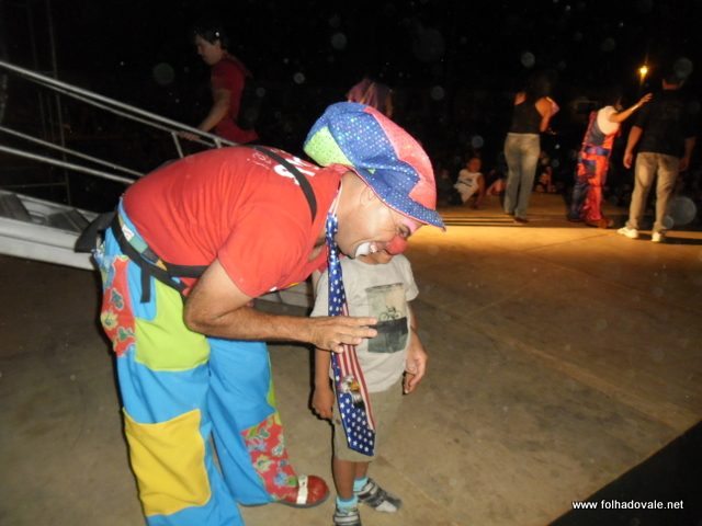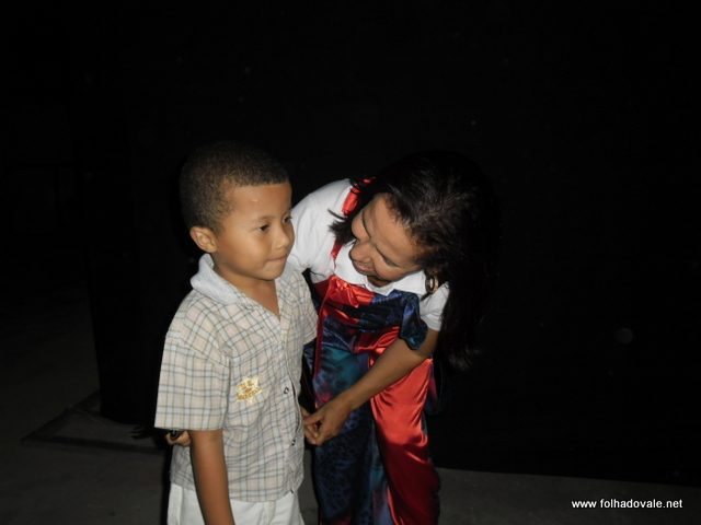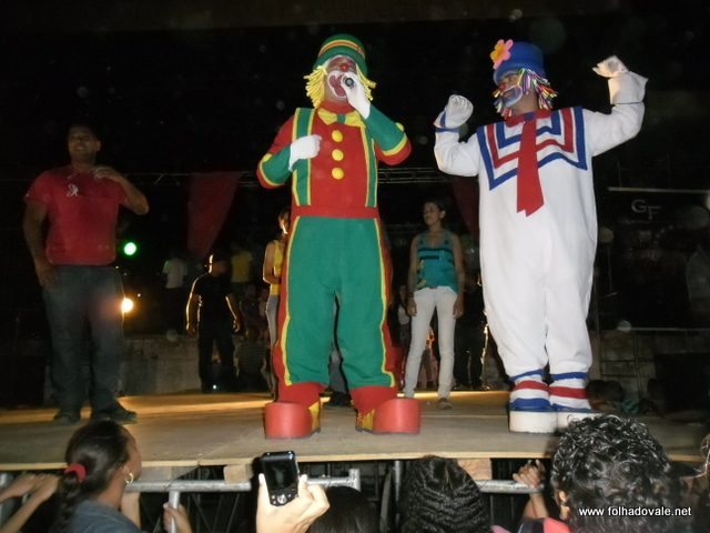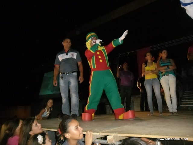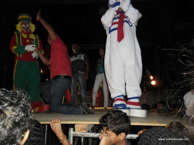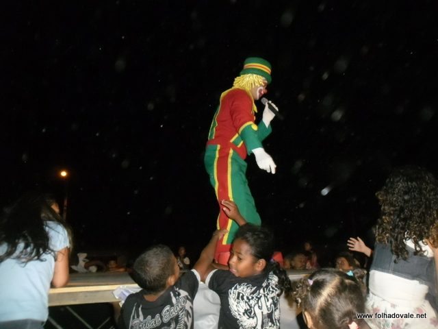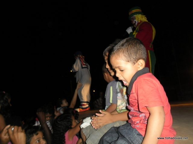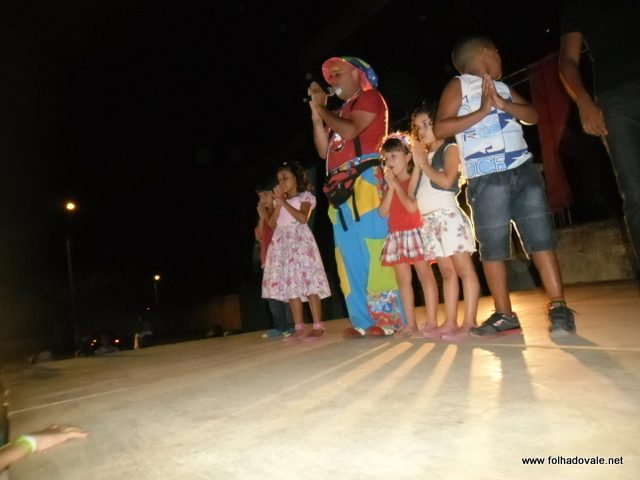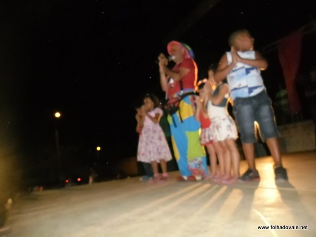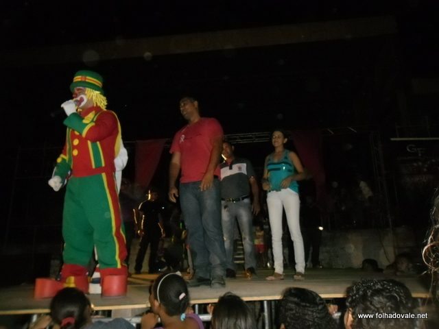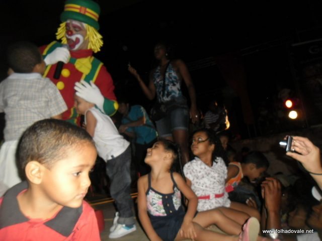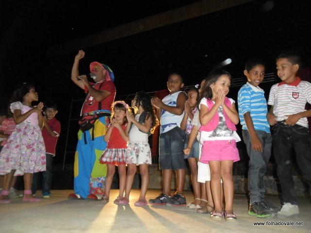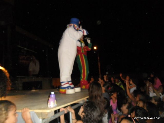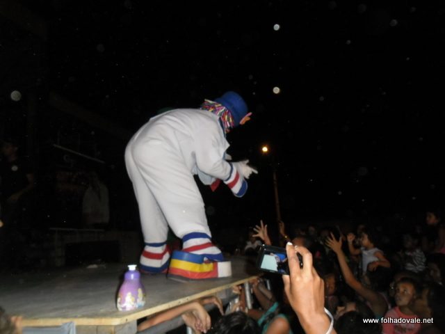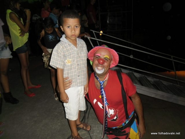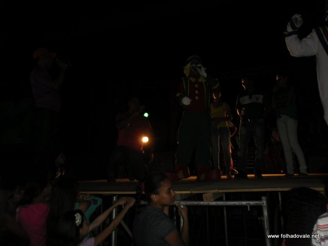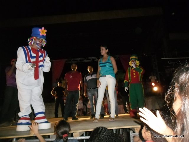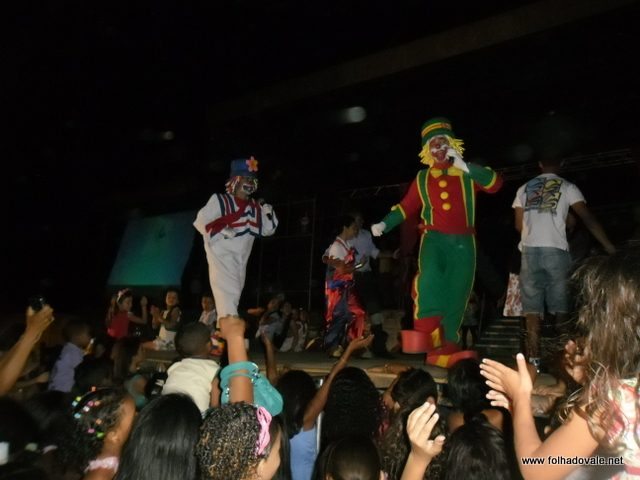O espetáculo que estava marcado para começar as 17h00min teve inicio por volta das 18h20min, com apresentação do palhaço Pirulito, por cerca de 20 minutos, em seguida, foi à vez da Tia Edna Matos, comandar o show até por volta das 19h25min, quando subiu ao palco os dois palhaços levando a criançada ao delírio até as 20h20min.