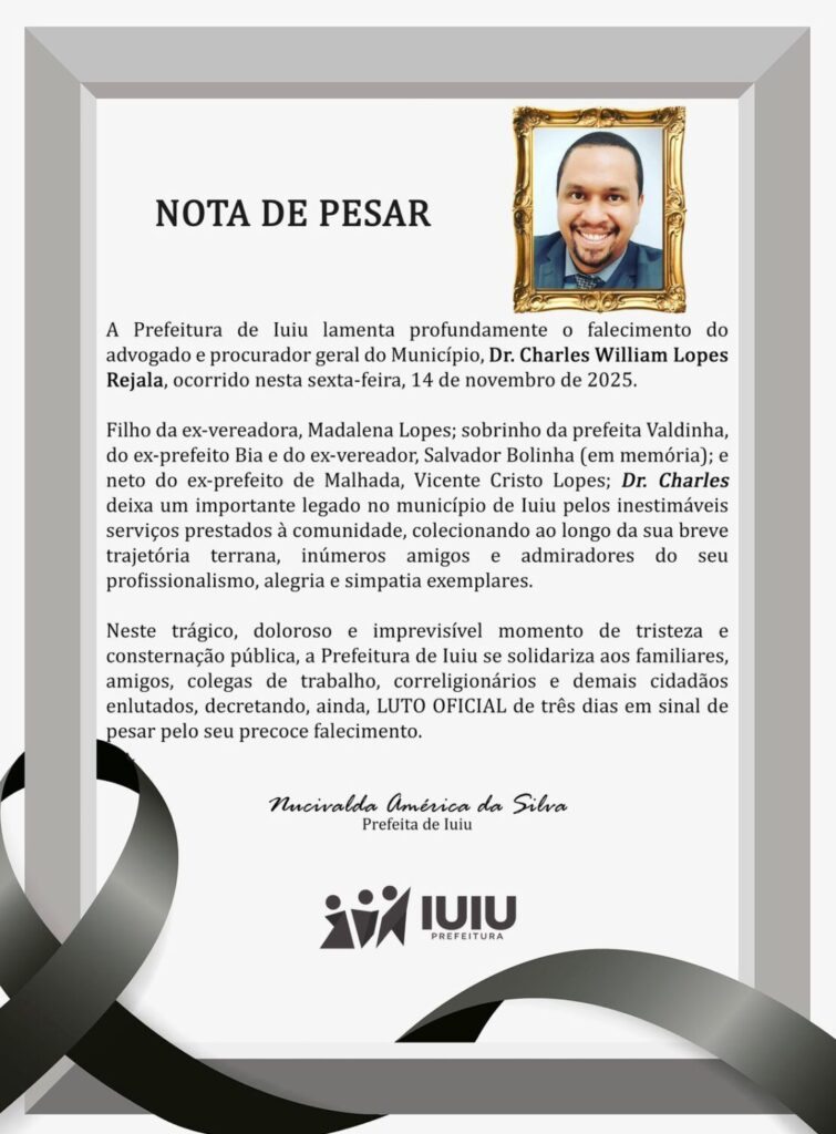 Em nota, a prefeita Valdinha lamentou a morte do sobrinho e procurador, além de decretar luto oficial de três dias em sinal de pesar.