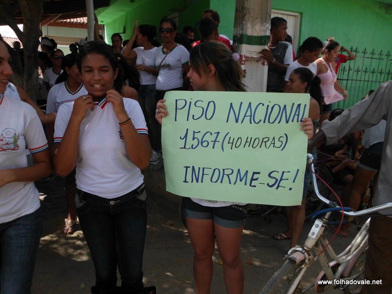 De acordo com a categoria, (Lei 11.738/08), assegura aos professores que salario do professor seja reajustado no mês de janeiro, mas o prefeito não quer cumpriu o que determina a lei. “O dinheiro tem em conta e o prefeito insiste em não cumprir,”, disse um professor.