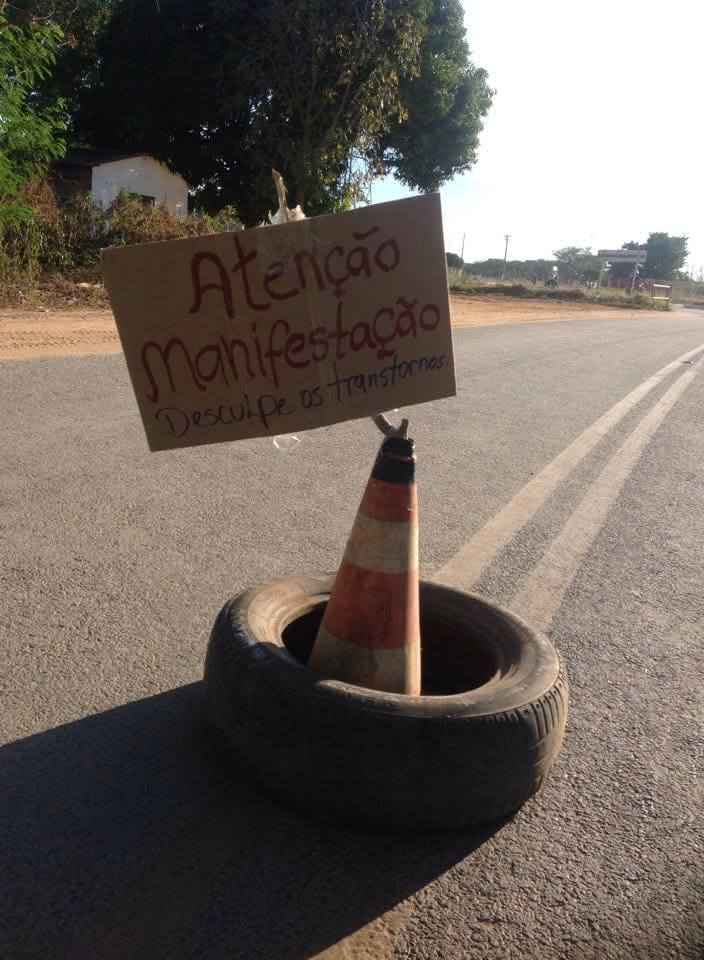 Não faltou nem mesmo o bom-humor durante o protesto: um gaito afixou um cartaz em um cone de sinalização com os dizeres: ‘Atenção: estamos em manifestação. Desculpe os transtornos’, numa crítica bem sutil ao que seria a inação da Prefeitura de Jaíba em Mocambinho.