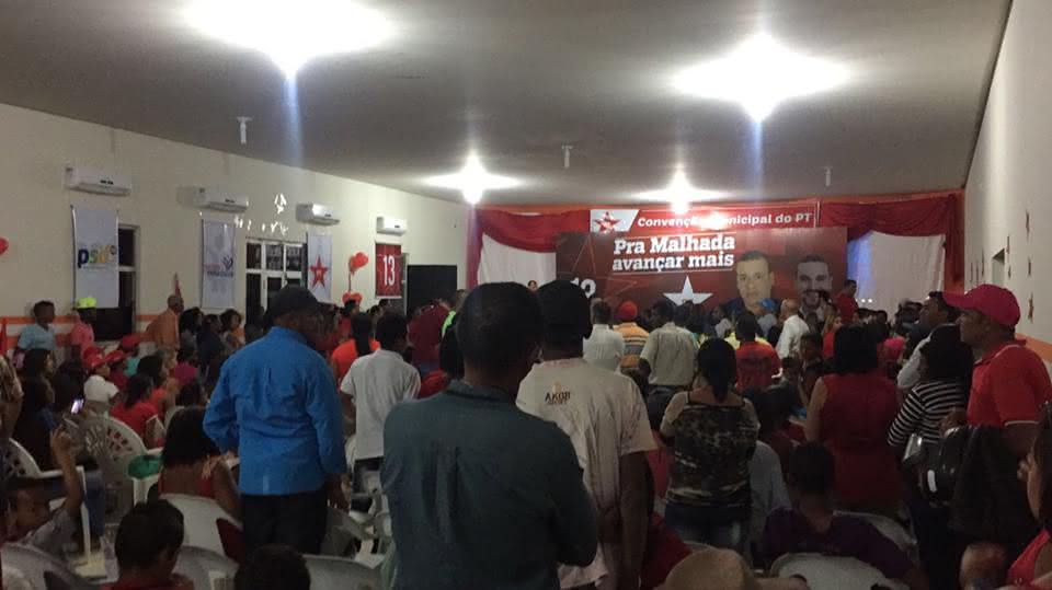 Malhada. Estiveram presentes diversas lideranças políticas do município, a exemplo dos presidentes dos partidos, ex-candidatos a vice-prefeitos, ex-candidatos a vereadores, dentre outros. Os deputados federais Waldenor Pereira (PT) e Arthur Maia (PPS/BA) e os deputados estaduais Zé Raimundo (PT) e Luiz Augusto (PP) não puderam estarem presentes no evento, mas registraram apoio ao grupo via gravação em vídeo e que foram exibidos pelo telão para todo o público presente.