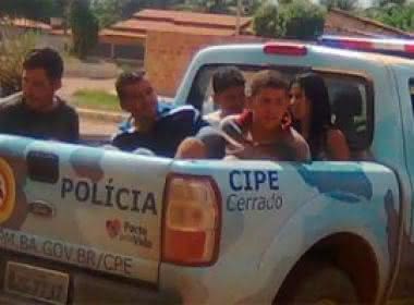 Quatro homens e uma mulher foram presos na madrugada da última quinta-feira,maio , após destruírem com explosivos a agência do Banco do Brasil de Baianópolis, no oeste baiano. A quadrilha foi presa por policiais militares da Companhia Independente de Policiamento Especializado (Cipe/Cerrado). Com os criminosos a polícia encontrou um saco com bananas de dinamite, farta munição para armas de grosso calibre, um maçarico, um pé-de-cabra grande, quatro rádio-comunicadores, celulares, uma sacola com dinheiro. Também foram apreendidos três veículos utilizados pelo grupo.