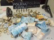 Com a quadrilha foram apreendidos 2 (dois) revólveres calibre 38 municiados, uma pedra de crack de aproximadamente meio kilo, uma porção de cocaína de aproximadamente 150 (cento e cinqüenta gramas), dezenas de cápsulas cheias de cocaína, centenas de cápsulas para embalagem da droga, dezenas de trouxinhas de maconha, uma balança de precisão, brusões de cor escura, 2 (duas) motocicletas Honda Titan 150, centenas de moedas – em sua maioria – de um real, aproximadamente R$ 2.533,00 (dois mil quinhentos e trinta e três reais) em espécie, além de vários aparelhos eletrônicos.