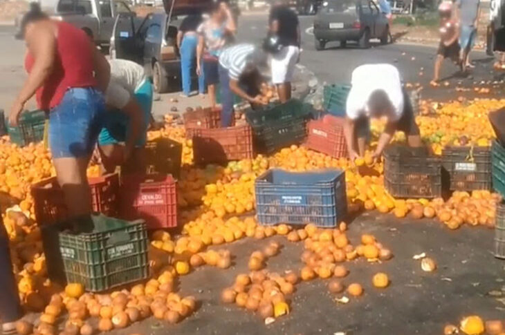 Caminhão carregado com frutas tomba na rotatória de acesso das rodovias BA-262 e BR-030 em Brumado