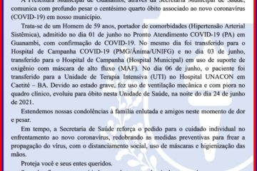 Guanambi registra centésimo quarto óbito por complicações da Covid-19