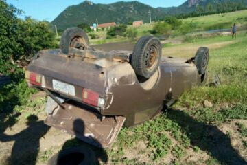 Motorista perde controle da direção e capota carro na BR-122 em Guanambi