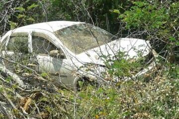 Pneu estoura e carro desce ribanceira na BR-030 deixando duas pessoas feridas em Palmas de Monte Alto
