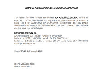 EDITAL DE PUBLICAÇÃO DE ESTATUTO SOCIAL APROVADO
