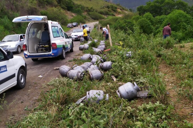 Caminhão carregado com gás tomba na curva da morte em Vitória da Conquista
