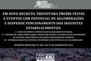 Prefeitura de Iuiú publica novo decreto que proíbe realização de festas e eventos com potencial de aglomerações