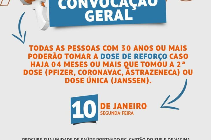 Prefeitura de Iuiú convoca pessoas acima de 30 anos para dose de reforço de vacina contra Covid-19